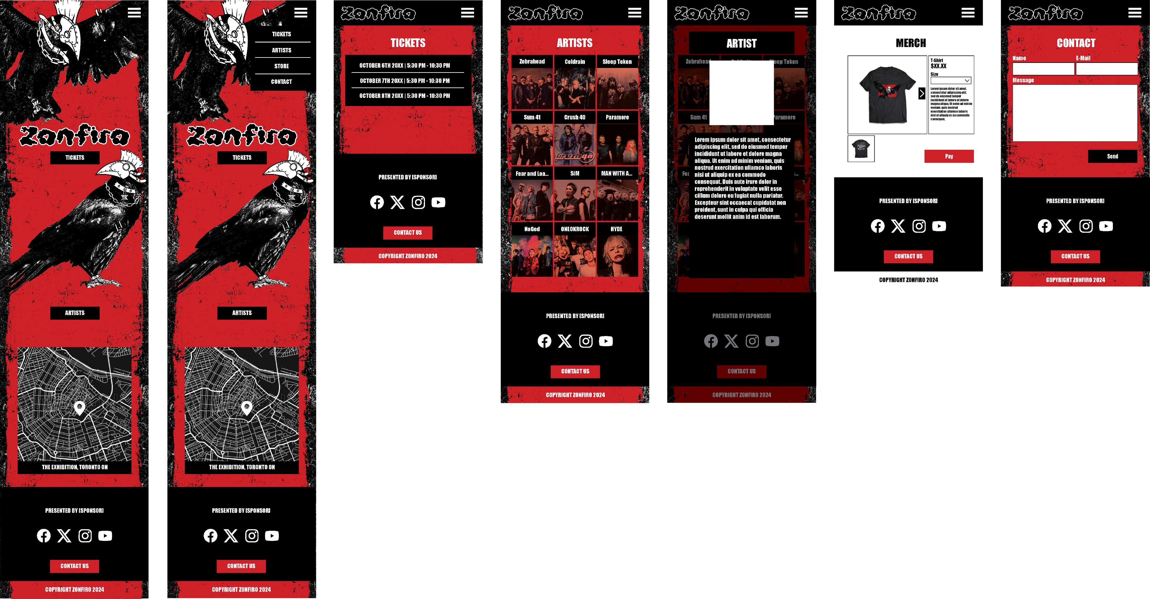 Marketing for a fictional rock/punk music festival. Consisting of a poster, a t-shirt, an Instagram carousel and a mobile website prototype.