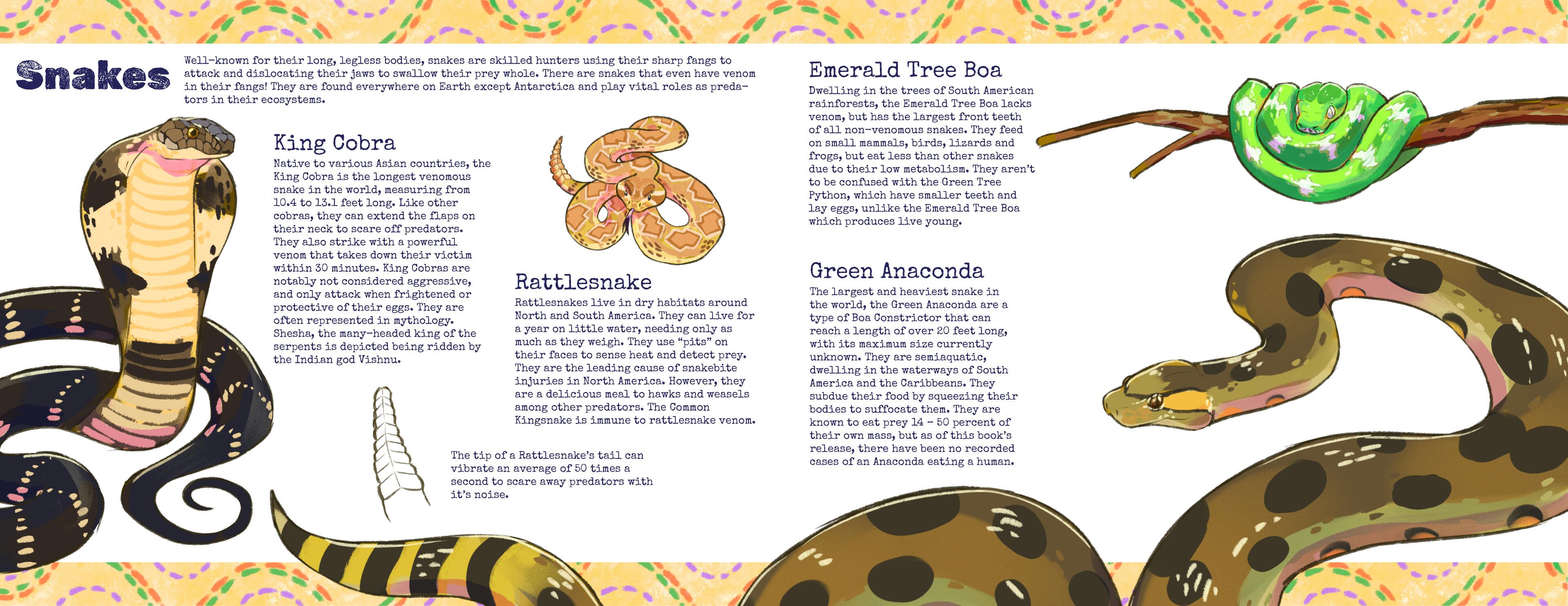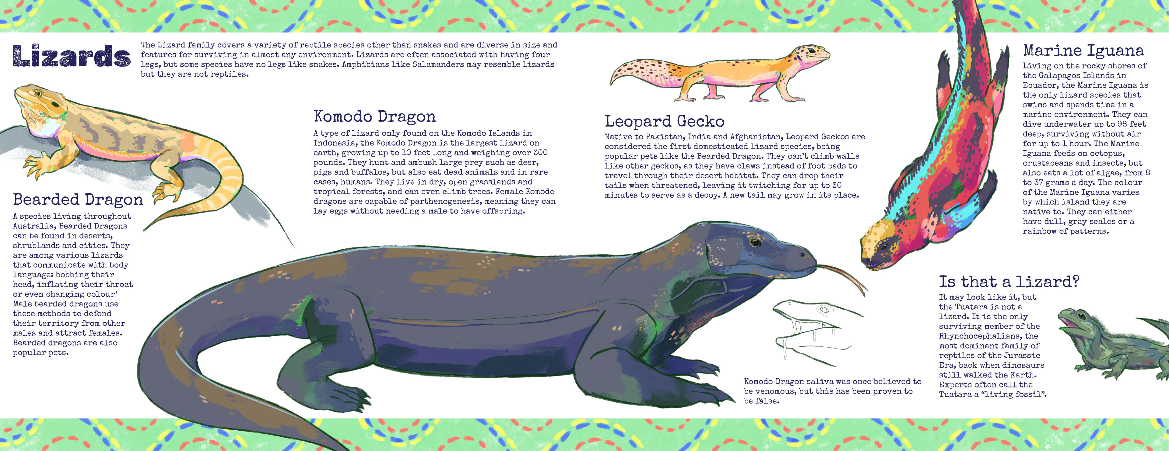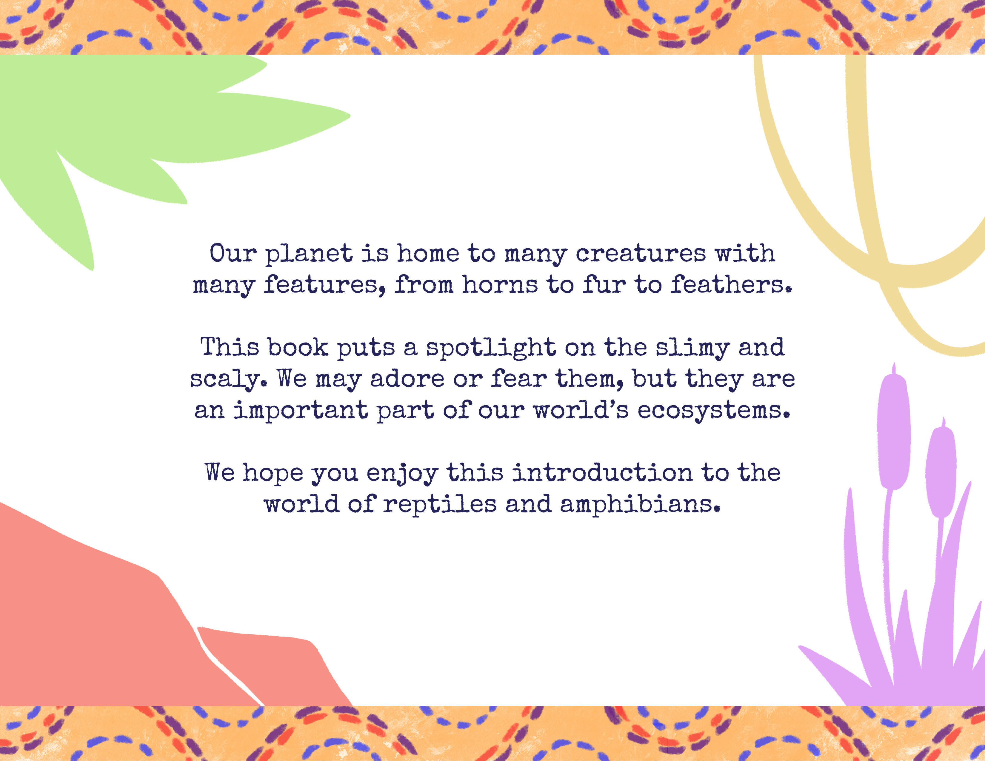 Educational children's book serving as a brief guide to reptiles and amphibians. Features colourful illustrations accompanied by short paragraphs of facts and diagrams.